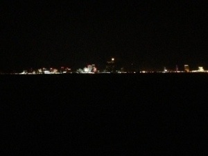 About 20:00 the Atlantic City lights looked like an oasis rising out of the black sky. We watched as it got larger and more colorful, passing on starboard at 23:00.