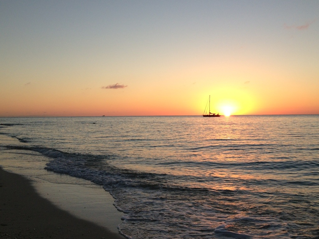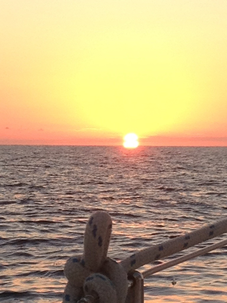 Sunrise over Bimini in our sights about 20 miles off shore