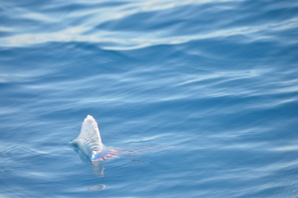 Sue captured this great shot of a Man-O-War as we crossed to Bimini. They put up their sail and let the wind carry them to their next victim!!