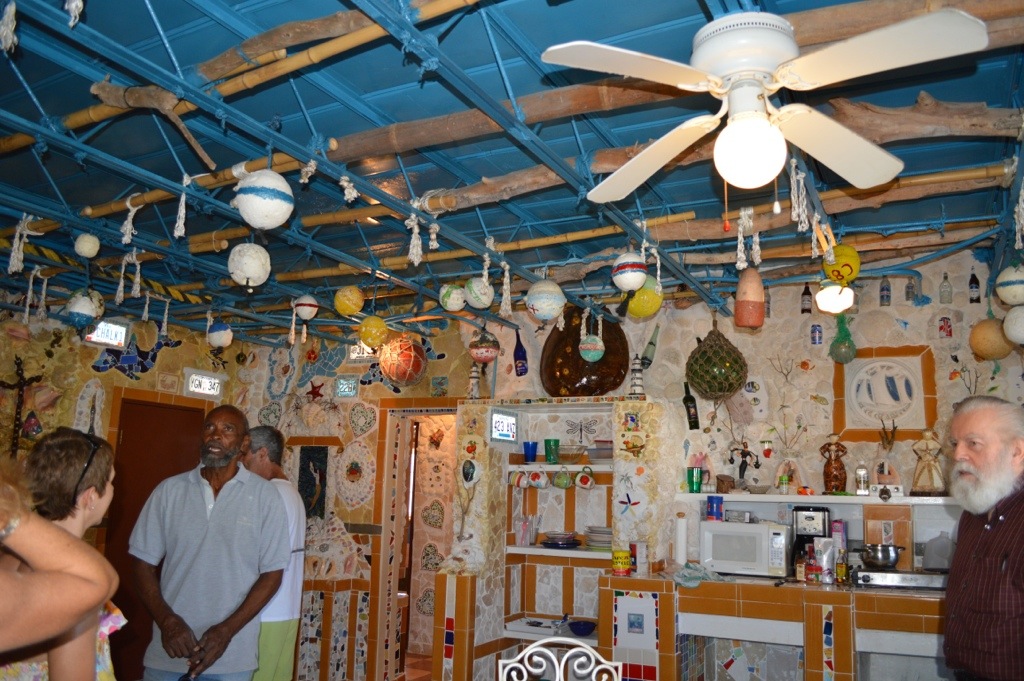 Inside the Dolphin Museum. The gentlemen in this shot is the owner and craftsmen. Pretty much every material he used came from the island or trinkets he was presented by his many guests. It’s truly been a labor of love that had taken years. The walls are molded of coral ground cement and mosaics he’s created over time. If you can zoom in you might see a bit of the detail.